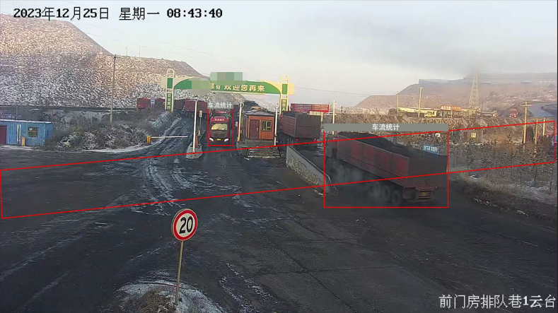 在礦山關鍵路口,透過算法識別有無貨運車輛進出,並統(tǒng)計進出數(shù)量,有助於礦山日常管理,對異常進出行為及時預警。