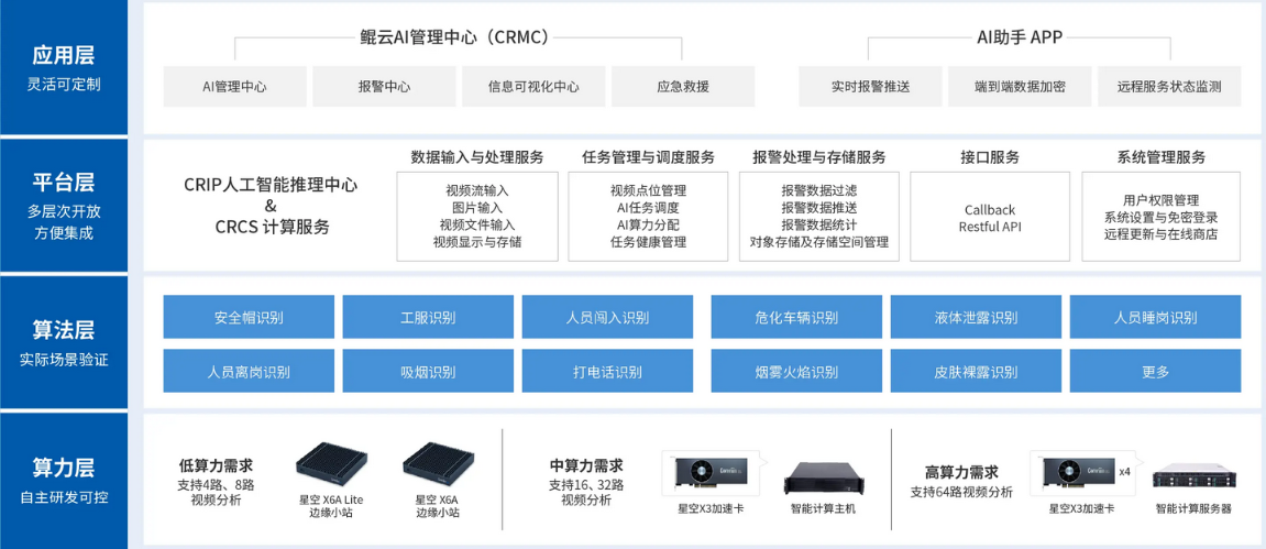 危險化學品領域頻繁發生的典型事故,暴露出傳統安全風險管控手段問題突出。為幫助企業從根本上消除隱患、從根本上解決問題,鯤云科技為化工企業、方案提供商、集成商等提供智慧化工管理系統,采用深度學習算法對人員行為、環境風險、安全著裝、物體狀態等風險進行實時智能監測報警,助力危化企業建立安全生產風險監測預警系統,構建安全風險管控和隱患排查治理的雙重預防機制。