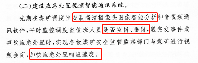 本次晉應(yīng)急發(fā)〔2023〕65號文件主要針對晉中市所有煤礦完成重大災(zāi)害風(fēng)險(xiǎn)防控項(xiàng)目建設(shè)工作,為達(dá)到作業(yè)場所實(shí)時(shí)監(jiān)控、應(yīng)急處置有效響應(yīng)和風(fēng)險(xiǎn)隱患提前預(yù)判,要求在2026年完成全市煤礦建設(shè)AI視頻智能輔助監(jiān)管監(jiān)察系統(tǒng)、應(yīng)急處置視頻智能通訊錄和重大違法行為智能識別分析系統(tǒng)。