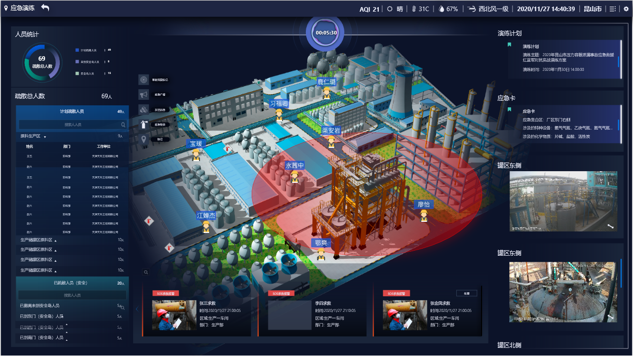 精確顯示生產區域內在線人員、車輛實時動態,跟蹤人員、車輛的位置和行為。第一時間掌握企業應急狀態時涉險人員情況,提高應急救援效率。