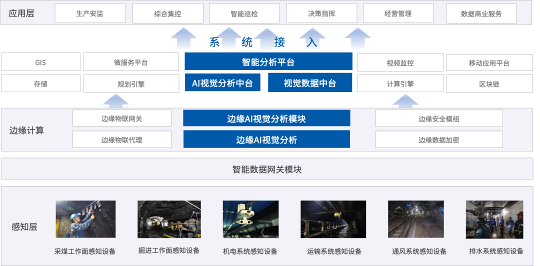 礦山業務場景復雜,其安全管理對風險和隱患發現的及時性、穩定性要求較高,人工智能是否能真正落地取決于在實際業務場景下算法模型是否具有較高的場景成熟度。集團、企業、礦井的管理職責不同,需要能滿足不同需求的行業解決方案,鯤云科技推出算力、算法、平臺一體化的礦山 AI 視頻分析解決方案,覆蓋露天礦山、井工礦山全場景智能化視頻分析需求。
