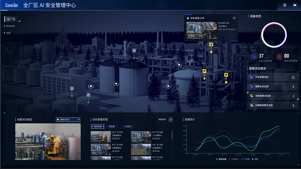 化工安全管理:視頻分析系統可以用于化工企業生產,對化工廠生產中出現的液體泄露、煙霧火焰、安全著裝、人員行為規范進行實時監測和預警,防止化工廠因安全管理疏忽引起化學爆炸事件。