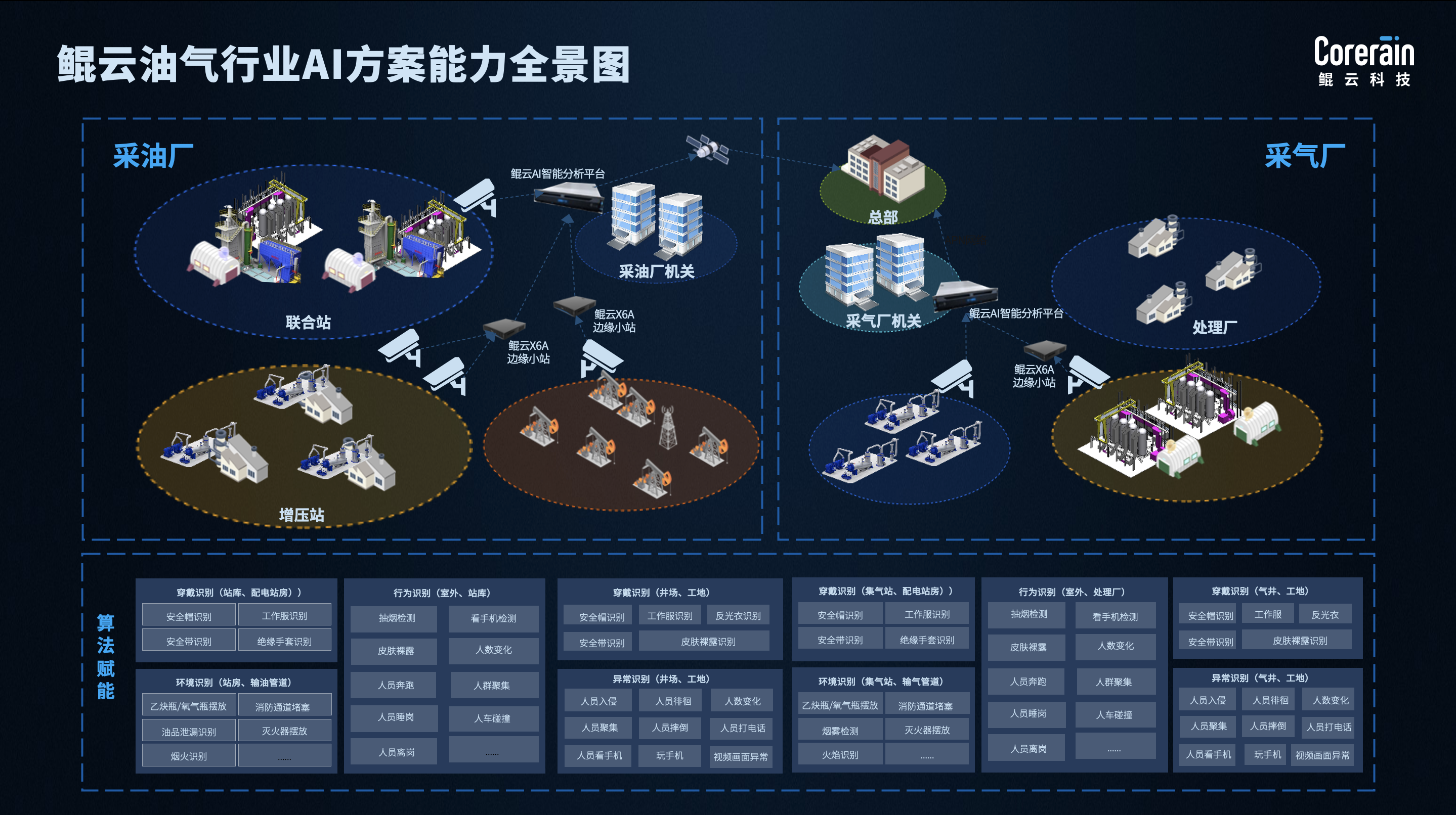 在“十四五”國家安全生產(chǎn)規(guī)劃的大背景下,推動(dòng)油氣田安全智能化轉(zhuǎn)型的"安眼工程"(安全生產(chǎn)智慧眼可視化智能化識(shí)別工程)是國家能源安全生產(chǎn)的重要戰(zhàn)略,鯤云智慧石油石化AI視頻解決方案正在助力"安眼工程"建設(shè),為油氣田企業(yè)提供從底層算力硬件支持、行業(yè)垂直算法到可視化管理平臺(tái)的一體化方案,彌補(bǔ)現(xiàn)場(chǎng)人力資源短缺和中心監(jiān)管力量的不足、加強(qiáng)現(xiàn)場(chǎng)風(fēng)險(xiǎn)監(jiān)測(cè)智能化提升。