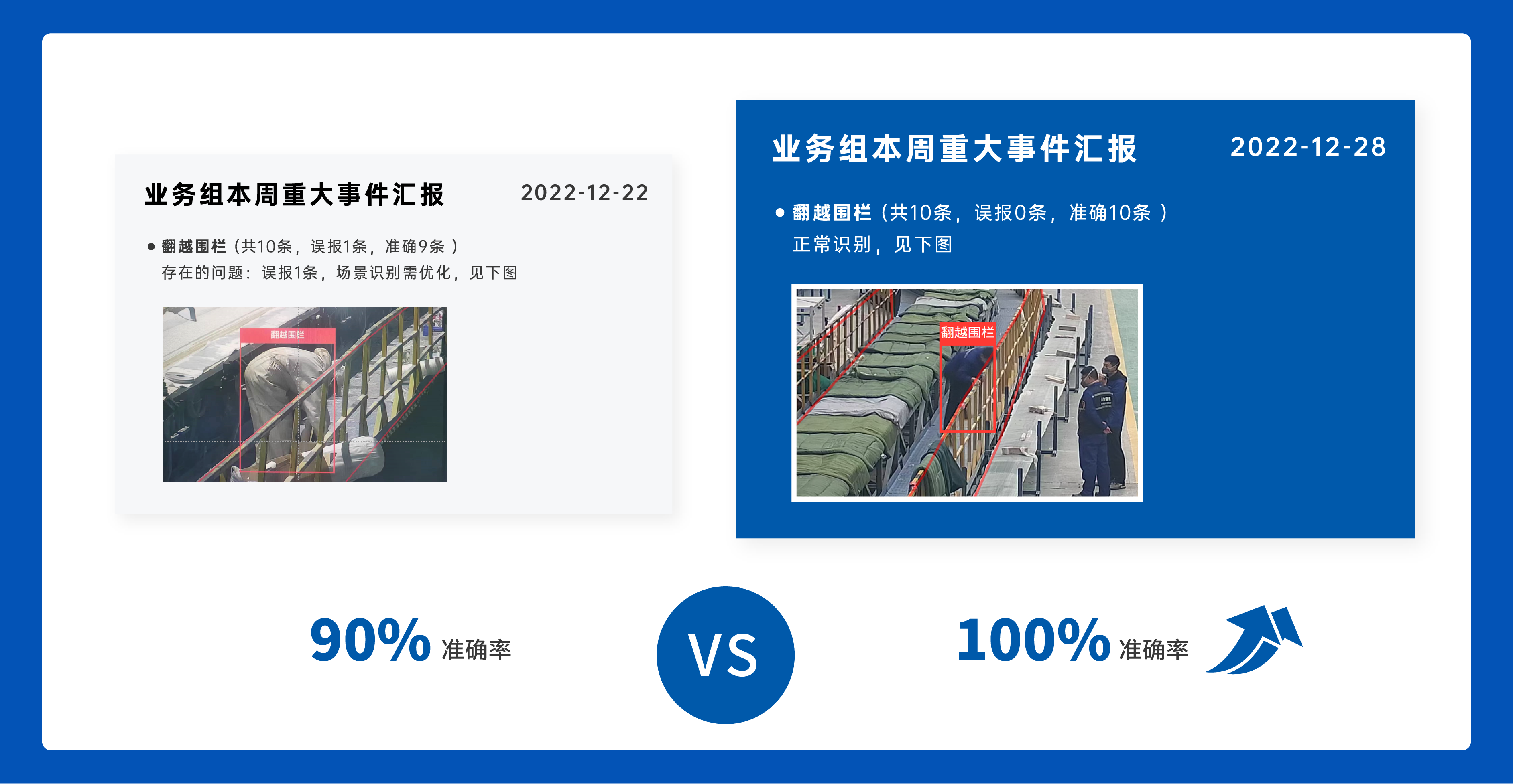 定制化算法從首次實測90.9%準確率,到驗收時100%準確率,在2022年年底全國嚴峻的疫情防控形勢下,鯤云AE團隊只用了4周時間完成所有算法的效果優化,并成功驗收。