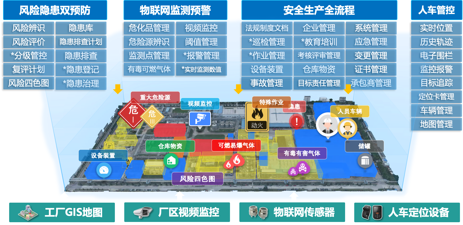 基于園區項目合作情況,真趣和鯤云共同推出了“化工企業安全生產信息化平臺“解決方案,方案融合雙方在技術、服務側的優勢,運用位置物聯網及 AI 視頻分析技術,以安全生產標準化體系為核心,對企業的“人、物、環、管”環節進行全面規范化、智慧化的管理,提升化工企業的安全生產管理水平。