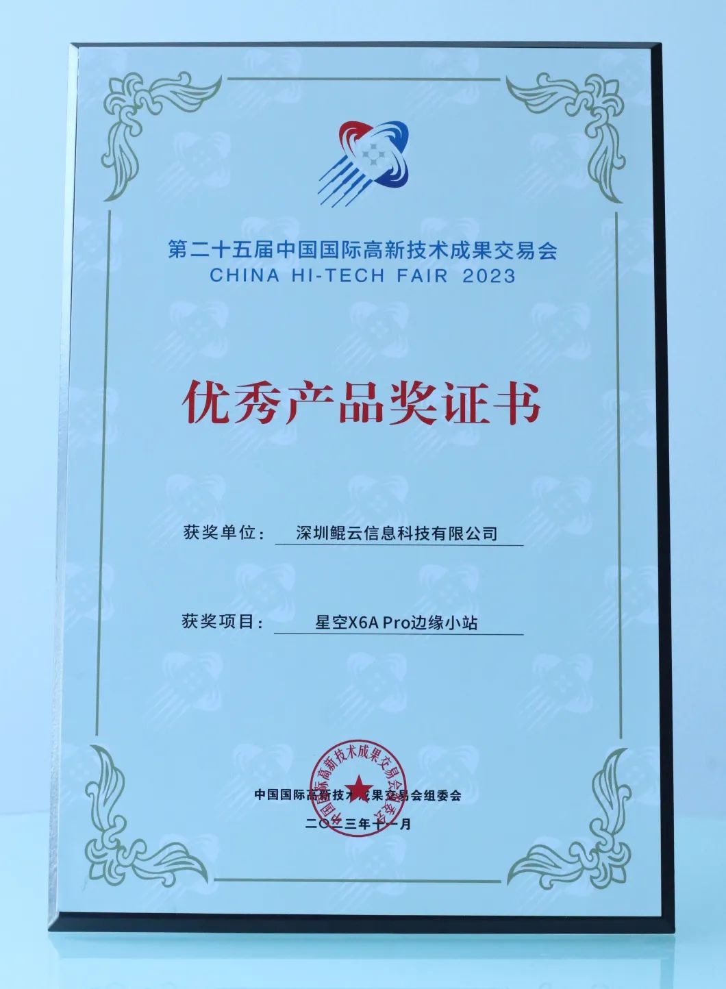 本屆高交會上,鯤云科技攜 CAISA 芯片、星空系列 AI 加速產品及 AI 視頻分析解決方案同時亮相福田展區及寶安展區,其中星空 X6A Pro 邊緣小站摘得本屆高交會“優秀產品獎”。